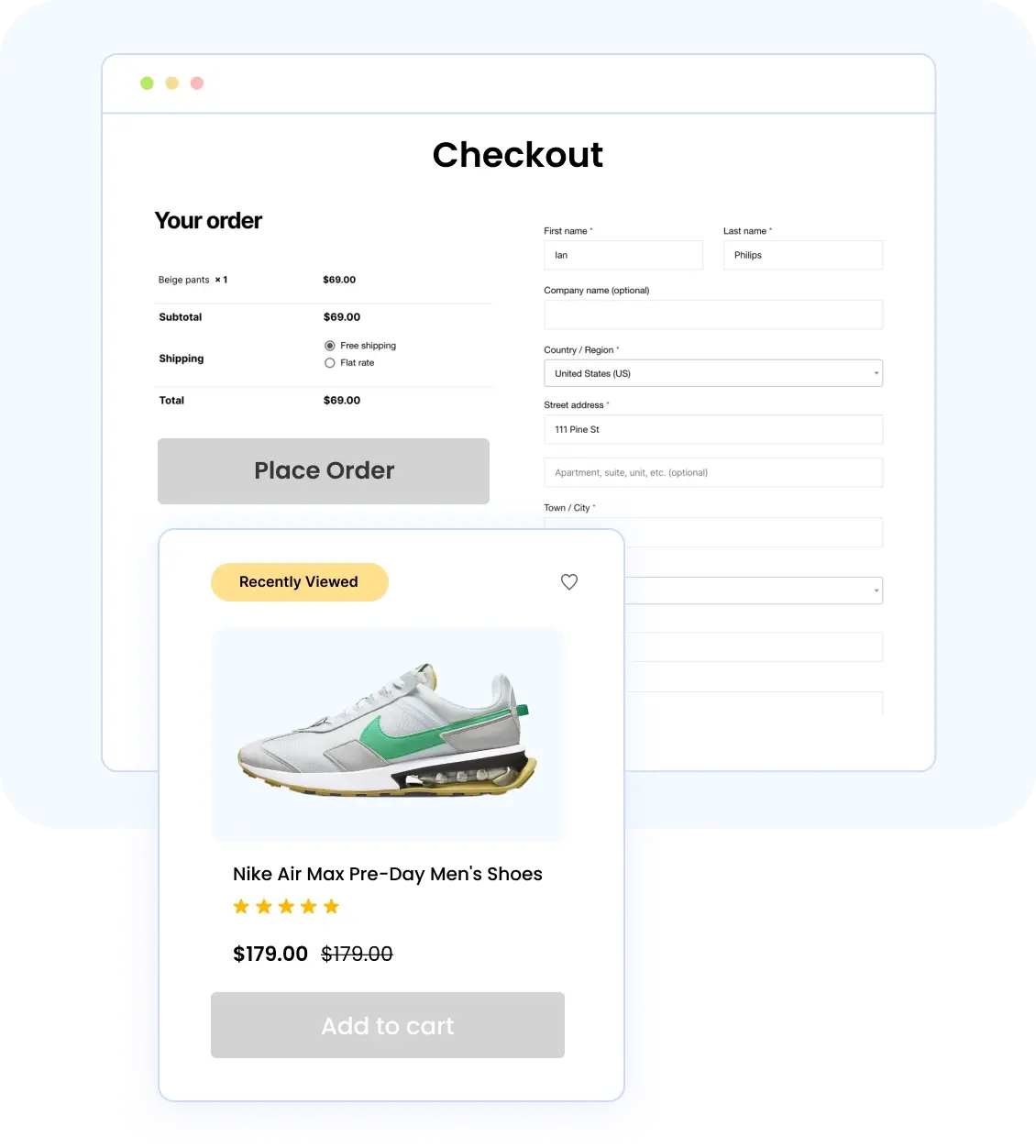 Quickly set up product recommendations with ease using the plugin’s built-in templates. These templates are designed around the most effective WooCommerce product recommendation strategies, including