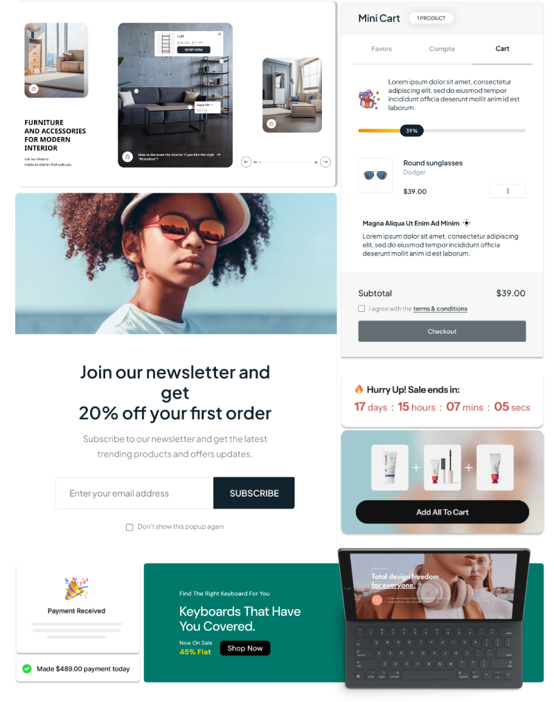 Capture attention before they leave. The exit intent popup triggers when users are about to leave, offering a last chance to engage or convert them with a special offer or message.