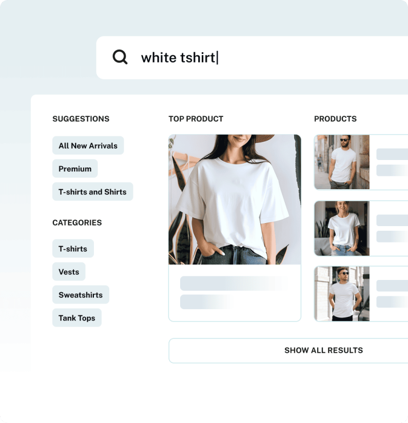 Search ensures your customers get the best, most relevant search results through features such as Autocomplete, Personalization, Typo Correction, and more.