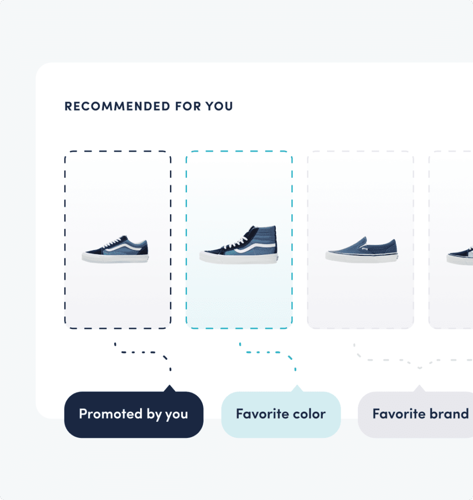 AI optimizes your product rankings by combining weighted signals and other factors to achieve the ideal order, continuously improving as more visitors interact with your products.